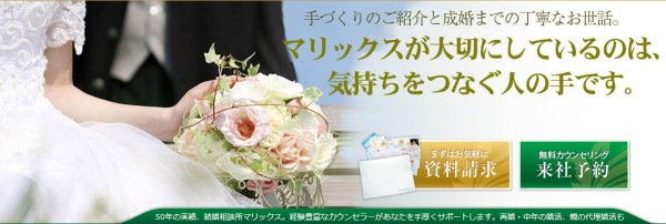 1970年から続く老舗の結婚相談所が「マリックス」です。カウンセリングに力を入れている丁寧なサービスに定評があります。